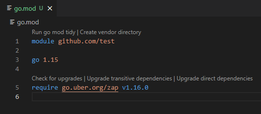 빌드에 실행 조건인 main으로는 아래의 그림과 같고, 실행하고자하는 main에서 필요한 의존성 라이브러리는 zap 이다.