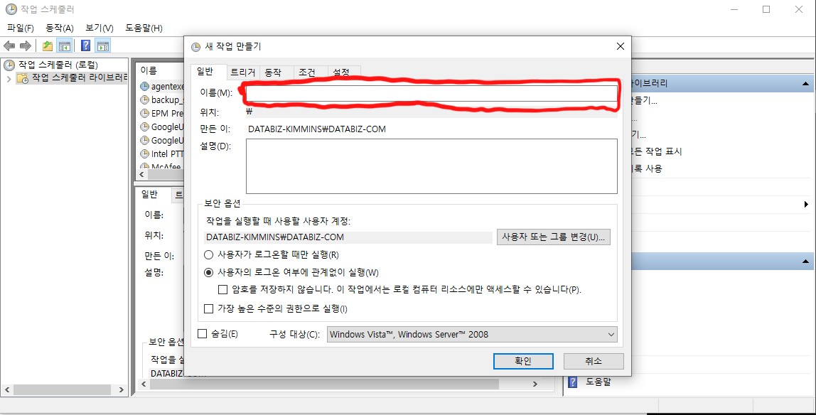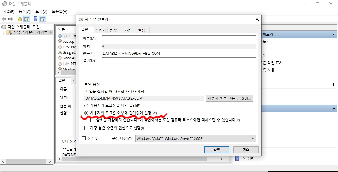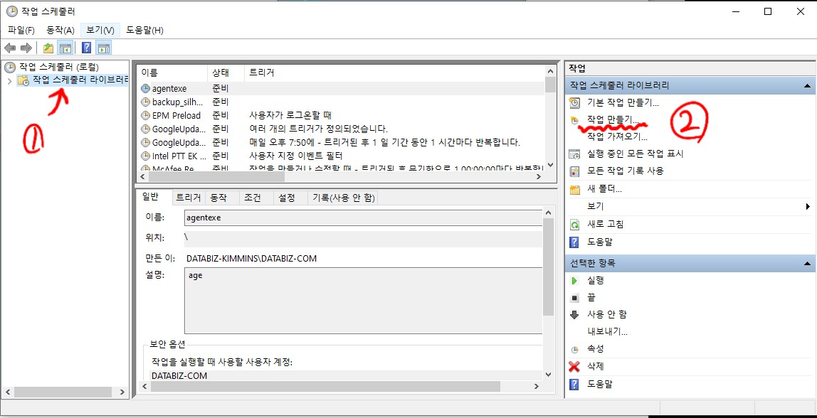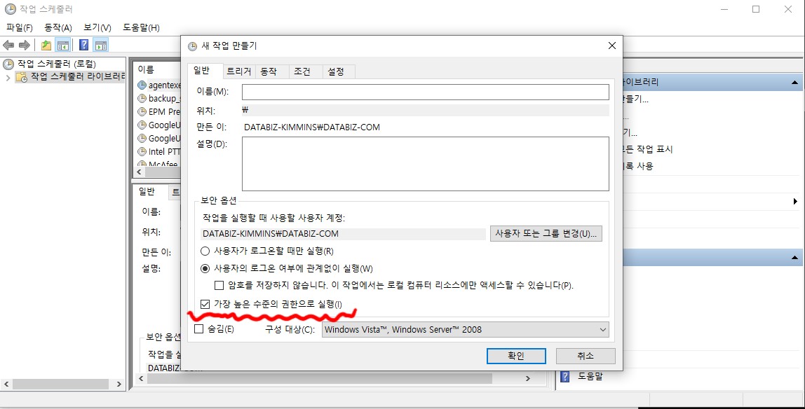 A. 작업스케줄러에서 관리자용 작업 생성.