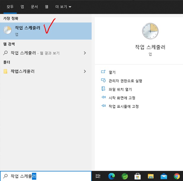 윈도우 찾기 기능을 이용해 "작업 스케줄러" 검색