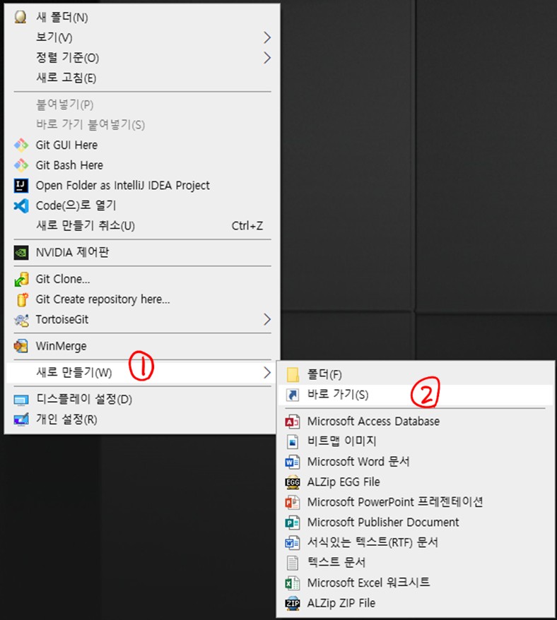 B. 바로가기 아이콘과 작업을 서로 연결.
